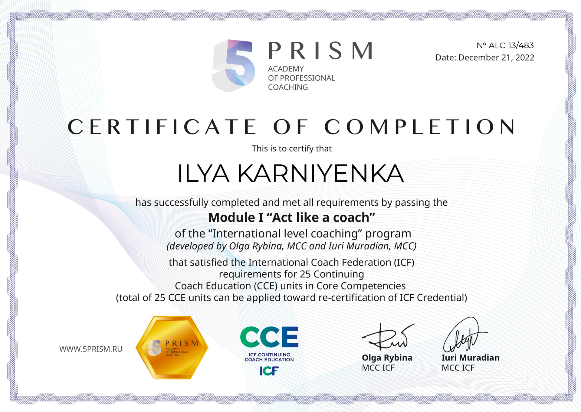 Тогда я понял, что моё истинное предназначение — помогать людям достигать успеха. Я выучился на коуча в академии 5 Prism, чтобы использовать свои знания и опыт для поддержки других.